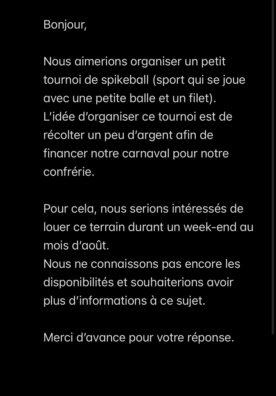 Nous aimerions louer la salle le 22/12/2023 pour un anniversaire (de 19h jusque +-5h le lendemain matin). Serait il possible d'avoir la disponiblité et le tarif? Merci